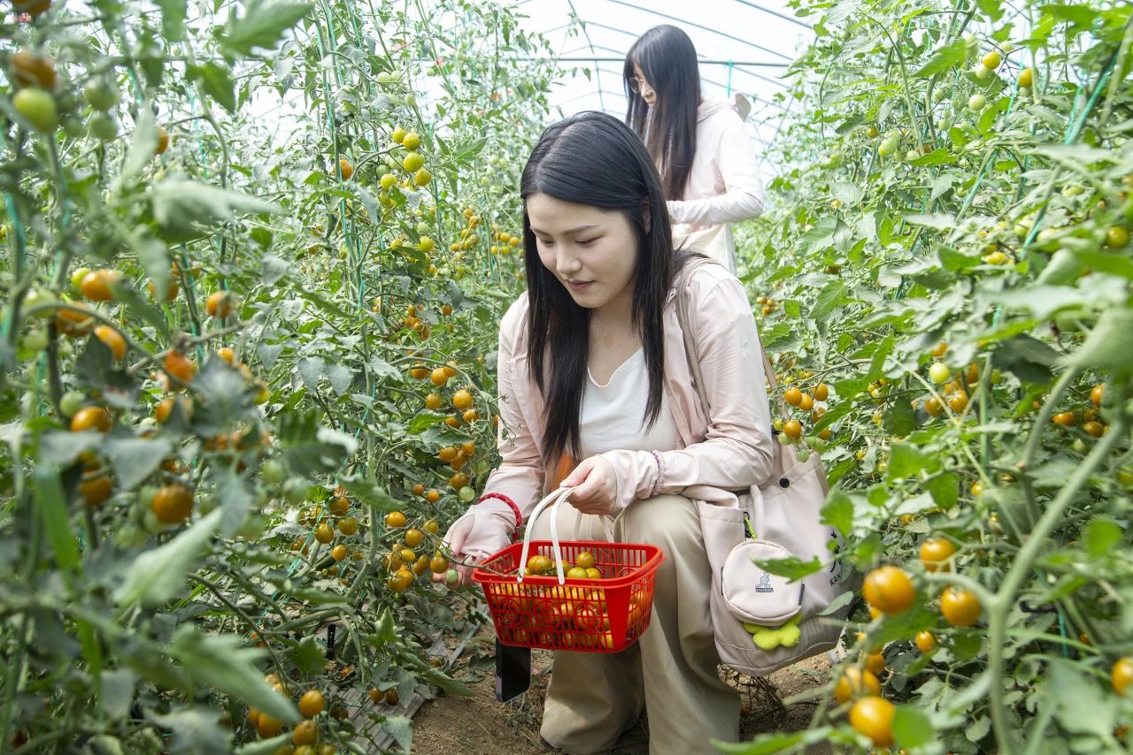 走进挂满果蔬的时令大棚,冯勇随手摘下一颗熟透的小番茄介绍道,“你看,精心养护、自然成熟的番茄咬一口爆汁,口感绝对错不了!”过硬的水果品质也是最让冯勇和王征骄傲的地方,加上为人真诚热情,采摘园吸引了众多回头客。每到采摘高峰期,单日入园人数近200人。