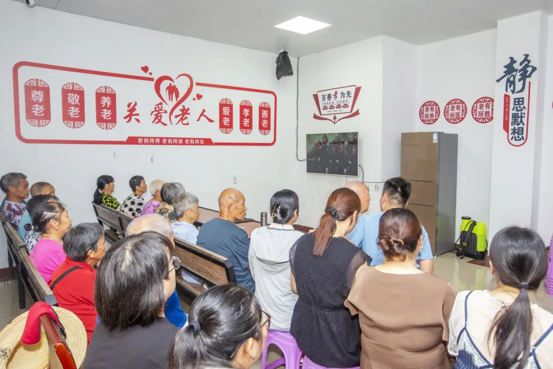 在前川街道沙港社区,辖区党员群众专注观看,为威武的人民军队喝彩,为富强的祖国自豪。社区干事方芊动情地说道:“这场阅兵让我直观感受到国家实力与民族凝聚力,身为新时代青年,我倍感骄傲!我们定会赓续先辈革命精神,传递这份爱国情。”
