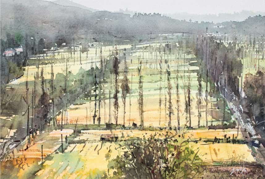 去年秋天,来黄陂写生的湖北省美术院原院长肖丰,在清晨的山间捕捉到了独特风光和空旷意境,“我仅用半小时就完成一幅极简风格的创作。”在他看来,黄陂既保留了原生态自然之美,又展现出快速发展的现代风貌。