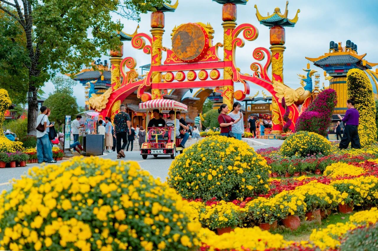 景区以巨型月亮等中秋主题美陈装点园区,搭配金秋菊花展,打造多处菊花造型景观与花海盛景,凭借高颜值场景成为游客拍照打卡的热门选择,轻松定格中秋美好瞬间。