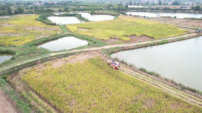 眼下正值中稻成熟的季节,祁家湾街章自连水产业家庭农场的稻田里,更是一派热火朝天的忙碌景象。沉甸甸的稻穗压弯了稻秆,空气中弥漫着稻谷的清香,两台收割机来回穿梭,“吞”下稻穗、“吐”出秸秆,动作麻利又高效。
