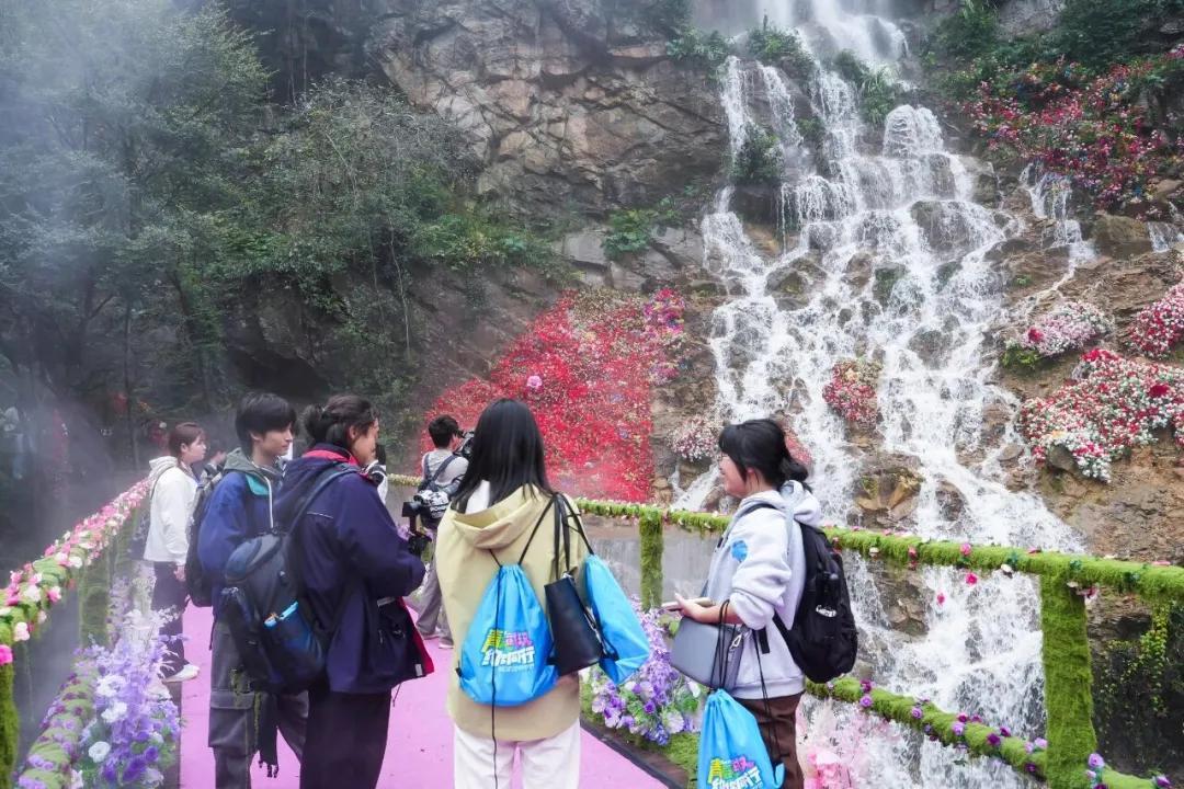 位于蔡店街的锦鲤土司城,融土家民俗与峡谷风光于一体。今年国庆、中秋假期期间,全新亮相的“花海瀑布・迷雾仙踪”景观氛围感拉满,景区客流量同比增长约两倍。