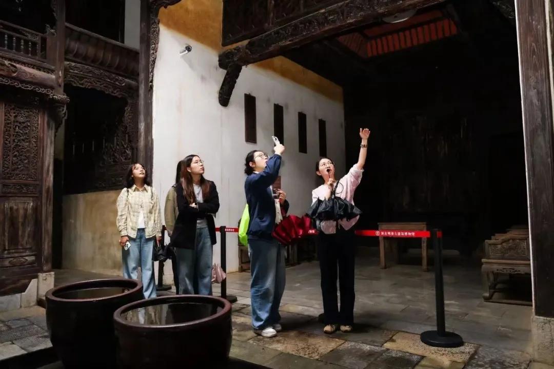 木兰湖畔的湖北明清古建筑博物馆里,13栋搬迁复建的明清名人故宅、宗祠会馆等文物建筑静静矗立。师生们漫步其间,在独特的建筑艺术与精湛木雕技艺中,穿越时空触摸荆楚文化的深厚底蕴。