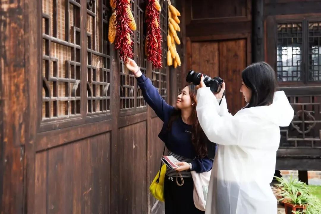 学子们沿山间步道穿行,踏花溪水阶、访土家吊脚楼,在潺潺水声与花瀑美景中,沉浸式感受自然与民俗文化的交融。“走进这片绿色森林,整个人耳目一新,心旷神怡!”华中科技大学的余明轩同学将这份被自然治愈的美好一一记录。
