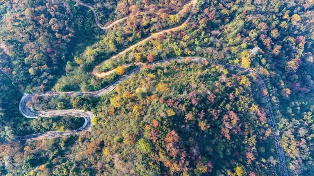 此时的木兰山早已换上秋日盛装,层林尽染、红叶漫山,全程5.5公里的路程,步步皆景,处处藏秋。登山爱好者们或结伴而行、相互鼓劲,或驻足拍照、记录秋光。