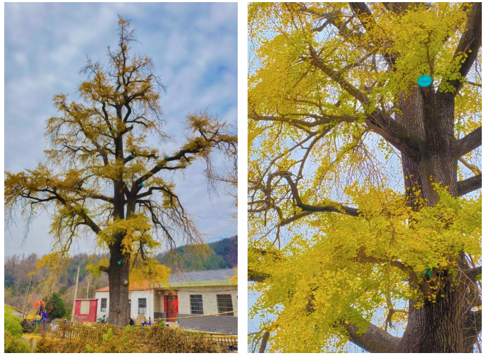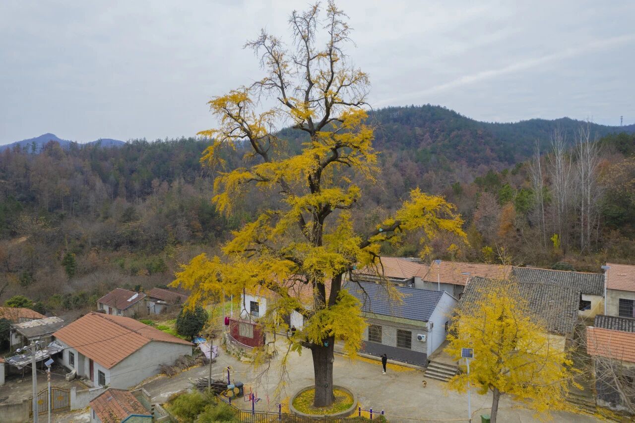 这棵古银杏树胸围440厘米,冠幅达16米,20米高的树干撑起满树金黄,叶片随风摇曳,阳光洒下时,仿佛给古树披上了一层“金甲”,成为初冬里最动人的生态画卷。作为黄陂区27株一级古树中的重要一员,它不仅是村庄的历史见证,也是黄陂生态文明建设的绿色名片。