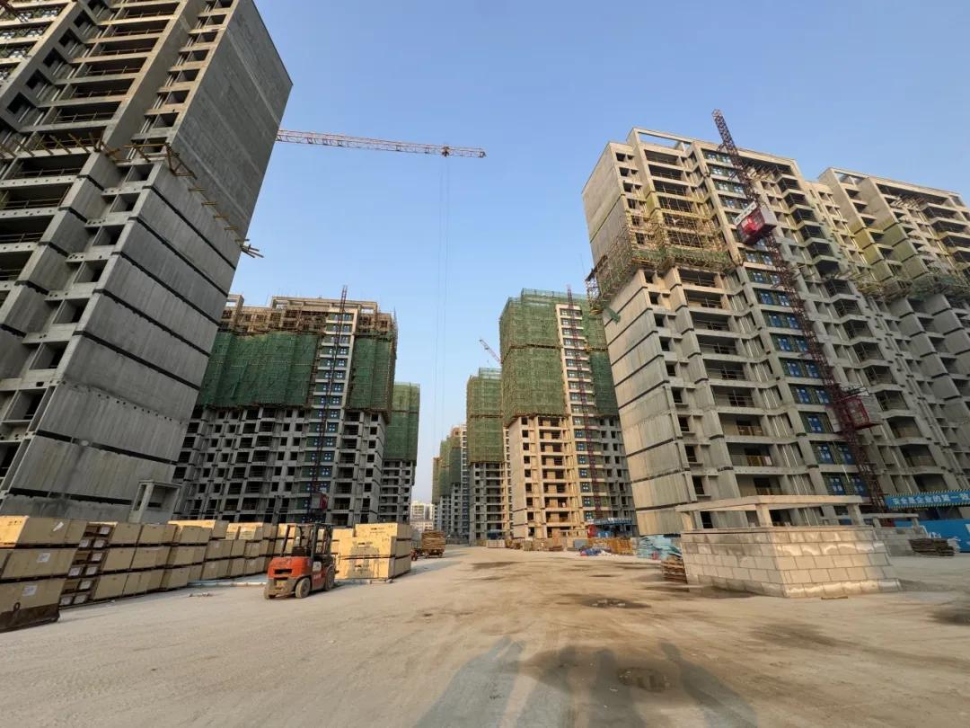 “目前主体已全面封顶,二次结构、初装修、门窗栏杆等工作都在穿插推进,确保明年2月完成整体工作量的70%,为明年8月顺利交房打好基础。”项目党支部书记胡广介绍道。