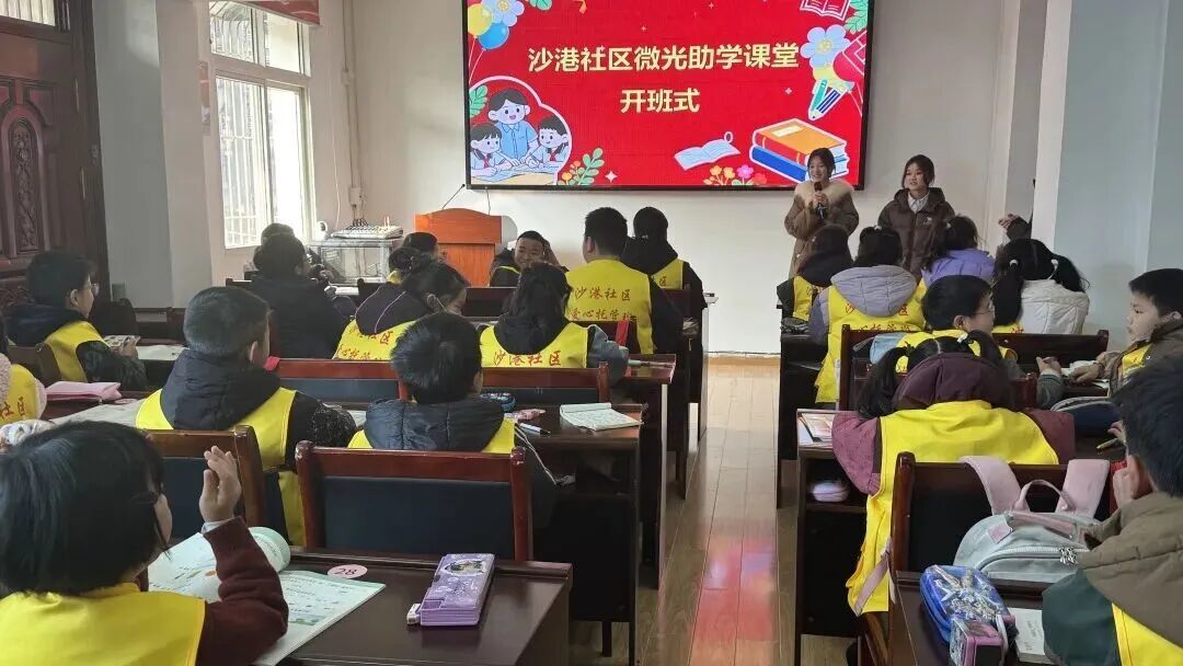 开班仪式上,区关工委、团区委、区图书馆等单位走进沙港社区微光助学课堂,为孩子们送上暖心关怀与精神滋养,让冬日校园暖意浓浓。活动现场,木兰红枫宣讲团围绕“德智体美劳全面发展 做新时代好少年”主题宣讲,结合鲜活案例引导青少年树立远大理想、涵养优良品德;区关工委领导结合青少年成长规律,分享励志故事与成长箴言,语言亲切、寓意深刻,让孩子们深受启发。区关工委、团区委、区图书馆三方联合为孩子们赠送文学经典、科普百科等各类书籍,鼓励孩子们以书为伴、以读润心,在阅读中汲取知识力量、涵养家国情怀。