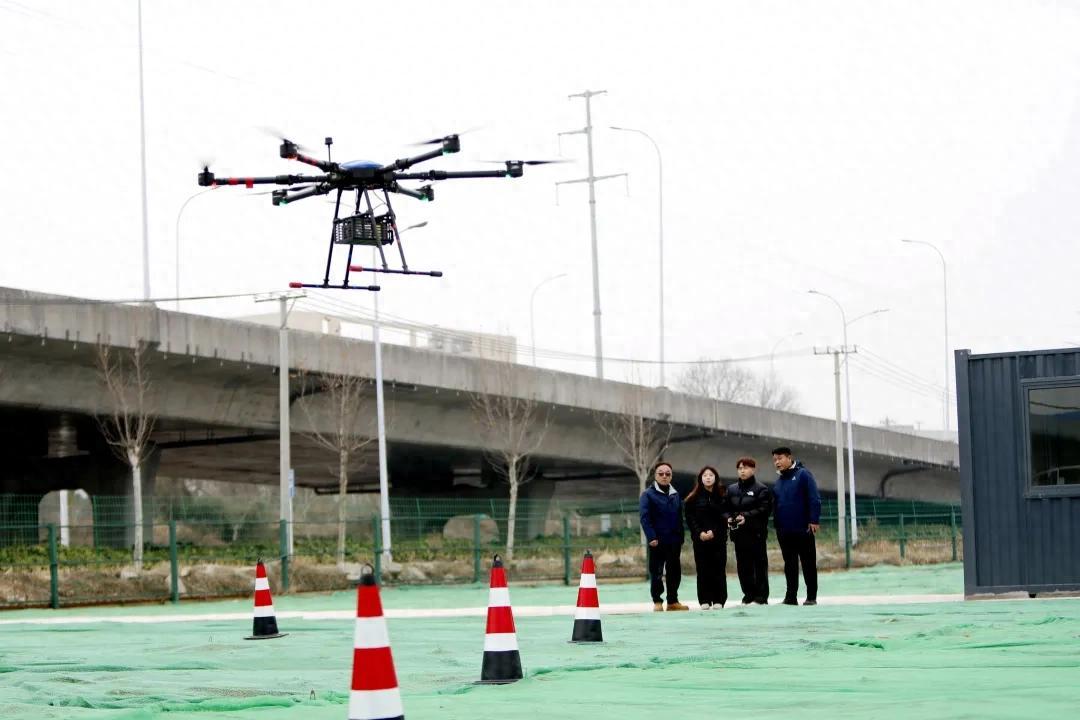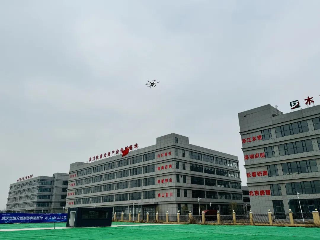位于黄陂前川的武汉轨道交通装备智造园,平整开阔的水泥起降坪上,一架中型无人机缓缓升空,在空中划出标准的“8”字航线,平稳完成转向、盘旋等规定动作。