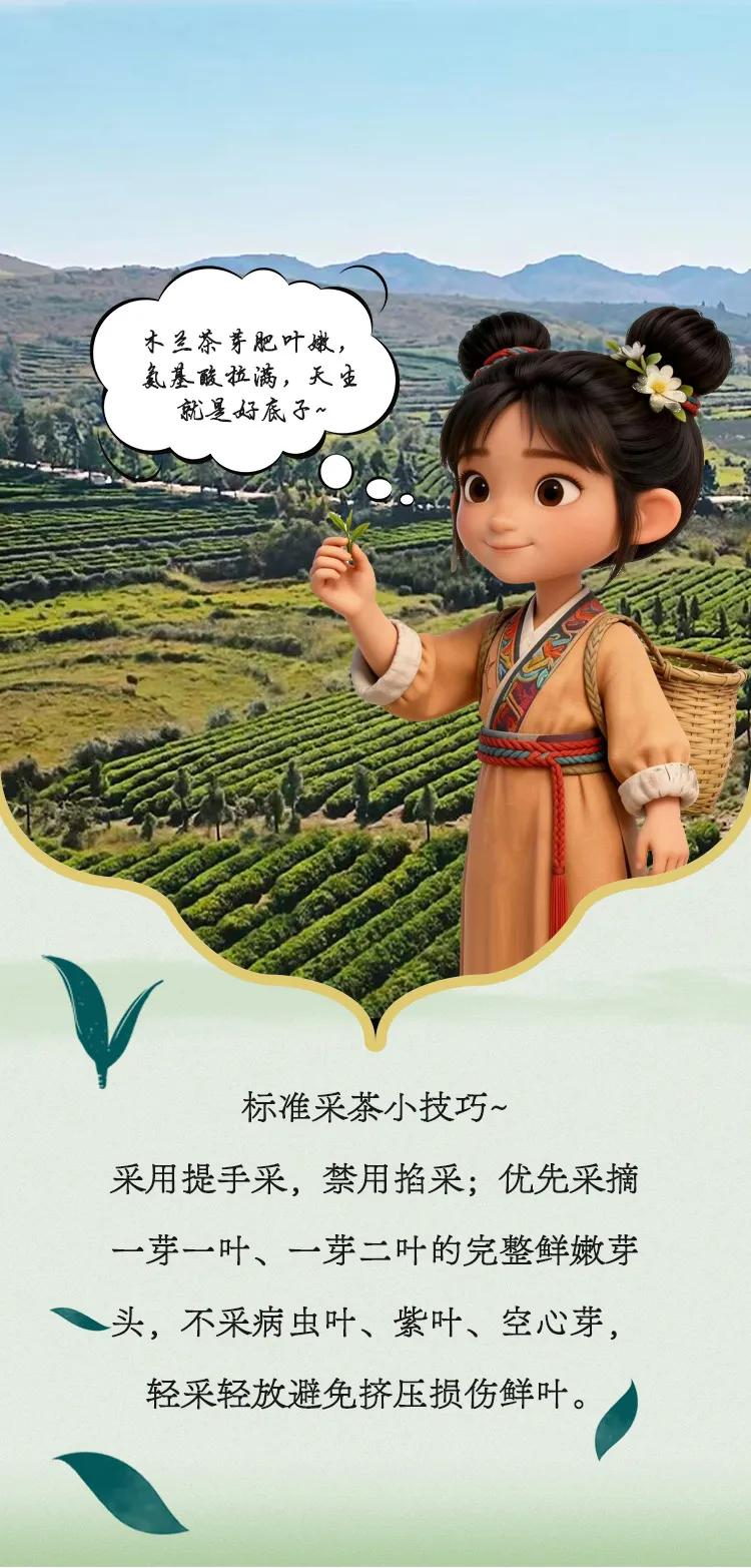 这片扎根于大别山余脉、浸润着木兰湖灵气的茶叶,以挺直翠绿的外形、香高持久的内质,俘获了无数茶客的心。今天,就让我们跟着小木兰,从采茶、制茶到品茶,一站式解锁木兰茶的魅力~