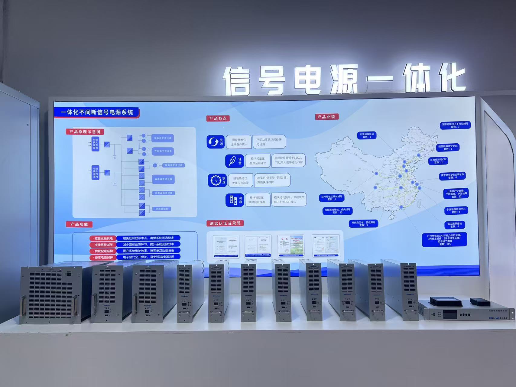 此次投用的武汉鼎汉客户服务中心,立足武汉,服务全国,配套有培训室及信号电源屏、稳压器、UPS等设备,将理论教学与实操训练相结合,既帮助客户提升对信号电源系统的产品知识和维护能力,也用于公司员工培训,持续提升技术人员水平,为广大轨交用户提供更优质的售后服务。同时,中心还承担公司产品展示功能,向客户介绍相关产品的功能、特点与技术优势。