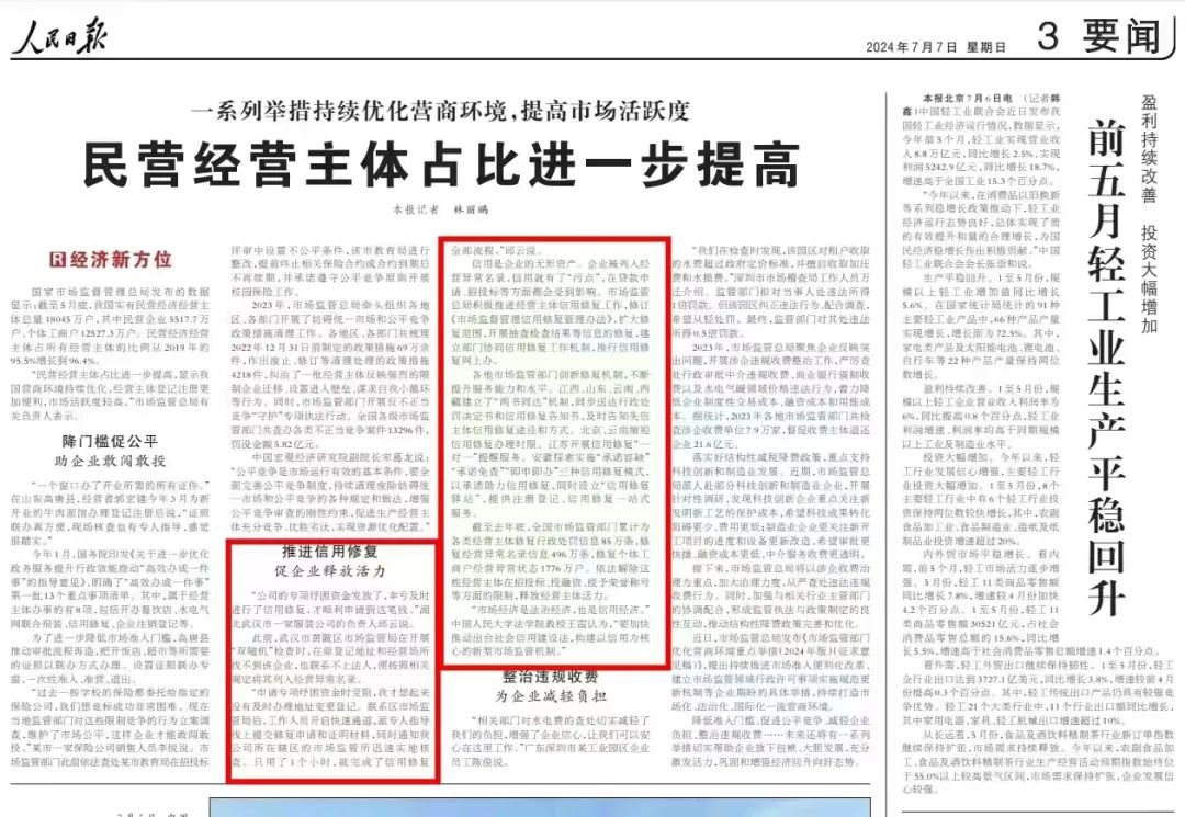 近日,《人民日报》“要闻”版重磅刊发武汉市黄陂区“推进信用修复,促企业释放活力”的创新举措,充分体现了黄陂区对优化营商环境的高度重视,用真情服务赢得了企业的真心赞誉。