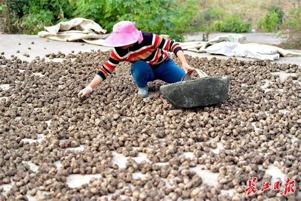 陆咀村党支部书记陆强介绍,村里种植荸荠时间久远,出产的“黄陂荸荠”是中国地理标志产品。目前村里荸荠的核心种植面积有1300余亩,年产量约650万斤。