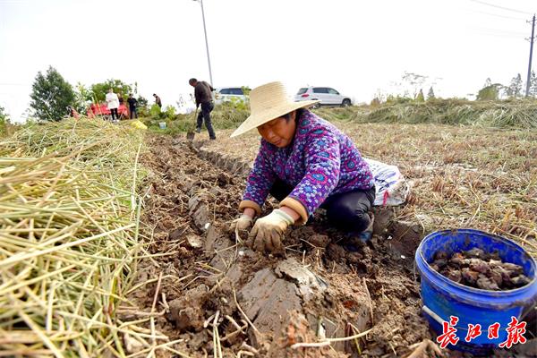 “我们村产出的荸荠个大、皮薄、肉嫩,清甜无渣、爽脆可口。”1月3日上午,71岁的村民郑友凤和家人边挖荸荠,边向长江日报记者推介她种的优质荸荠,希望更多人能来购买。