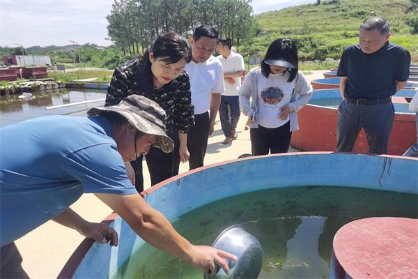 在武汉鑫鳜源生态农业科技有限公司,万红主任等参观了水产苗种繁育基地,公司负责人夏小平详细介绍了鳜鱼新品种研发情况、鳜鱼苗种繁育及年产量产值情况。企业多年来一直积极支持配合街道脱贫攻坚与乡村振兴工作,带动周边农户增产增收。万红主任对基地鳜鱼苗种繁育以及联农带农给予了充分肯定,就水产苗种繁育发展的前景、产品定位、产业持续发展的做法与经验等进行了深入探讨,并提出建设性的建议。