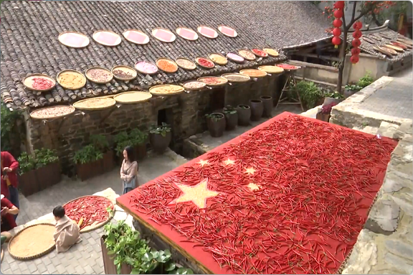 游客褚佳伟:“这里的晒秋场景非常美丽,五颜六色的农作物,让我感受到了古村的传统文化、田园气息和村民们的幸福。”