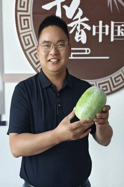 香芋水果冬瓜是引进的国外新品种,价格虽不便宜,但刘清觉得,农业也要创新,应该开发既能适应土地气候条件、附加值又高的产品。谈起自家的冬瓜,刘清就滔滔不绝,这种冬瓜自带香芋风味,去皮后可以直接生吃,清甜多汁,煲汤后更是软糯香甜,亩产可达6000至10000斤。因其优异的口感以及独家品种,盒马鲜生、小象超市等商超、平台早在种植初期就主动联系,签下包销协议。