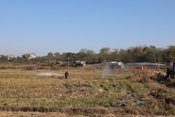 在示范基地,武汉合缘绿色生物股份有限公司现场演示了液体粪肥喷洒和堆肥撒施两种还田模式,详细讲解了不同粪肥的适用作物、施用方法和田间管理要点。服务主体代表介绍,通过推广液体粪肥还田和堆肥还田两类技术模式,实现了粪肥利用的标准化与轻简化,便于种植户接受和使用。