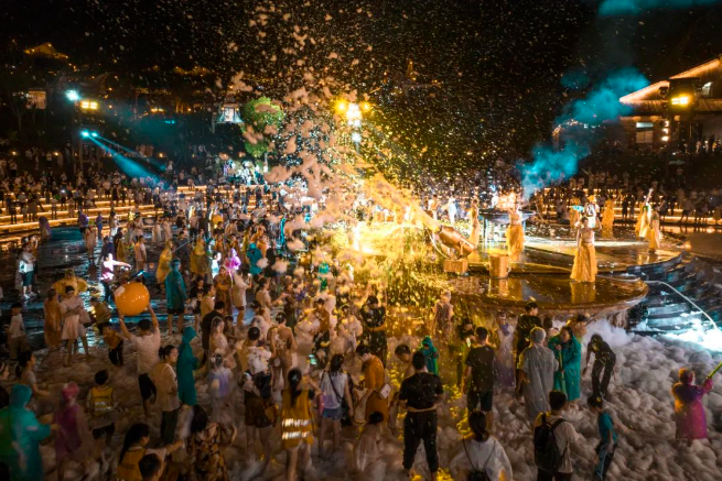 除了夜晚的精彩,白天的活动也不容错过。在迷雾森林清凉消夏,呼吸间满满都是负氧离子,赶走倦怠;