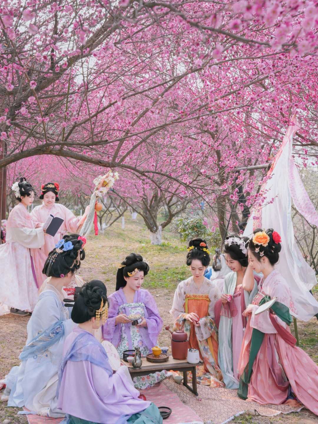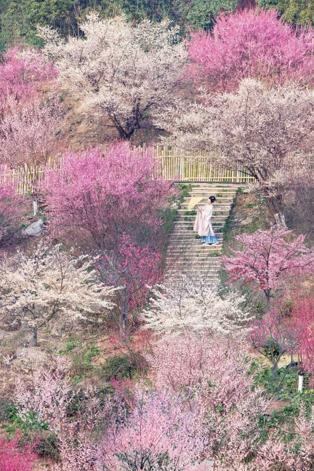 十余万株梅花沿山谷肆意绽放,红梅热烈、白梅清雅,粉嫩嫩的早樱悄悄缀满枝头,梅樱同赏的限定盛景,让整个山谷都浸满了浪漫气息。目之所及皆是粉白嫣红,随手一拍都是春日限定大片,汉服控们穿起美美的汉服来打卡,氛围感直接拉满!