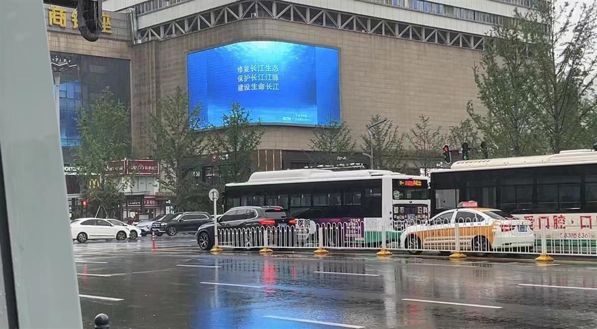 汉阳区在汉阳大道、龙阳大道、琴台大道主要商业圈的大型显示屏滚动播放禁捕宣传口号及短视频