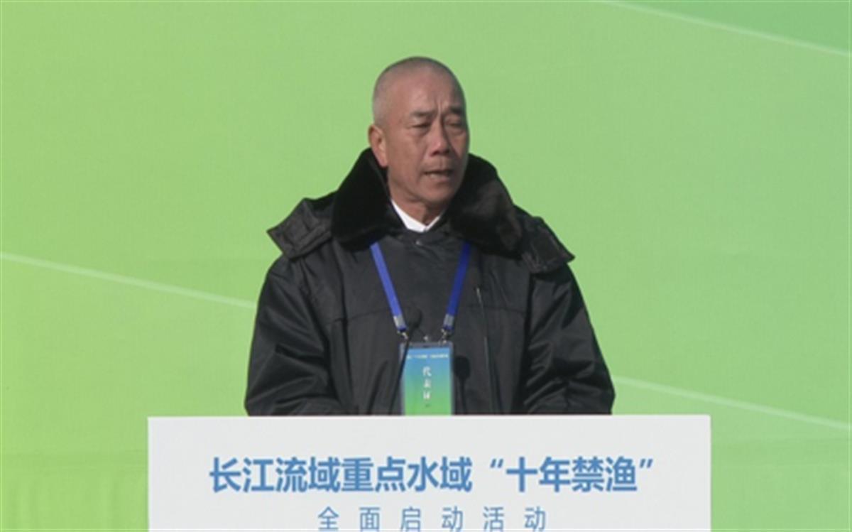 武汉市退捕渔民代表王明武在长江流域重点水域“十年禁渔”全面启动活动上发言