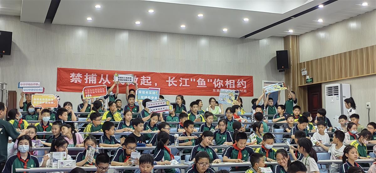 东西湖区禁捕办在吴家山街嘉禾园小学开展禁渔宣传进校园活动,现场对150余名小学生讲解了长江大保护相关知识。