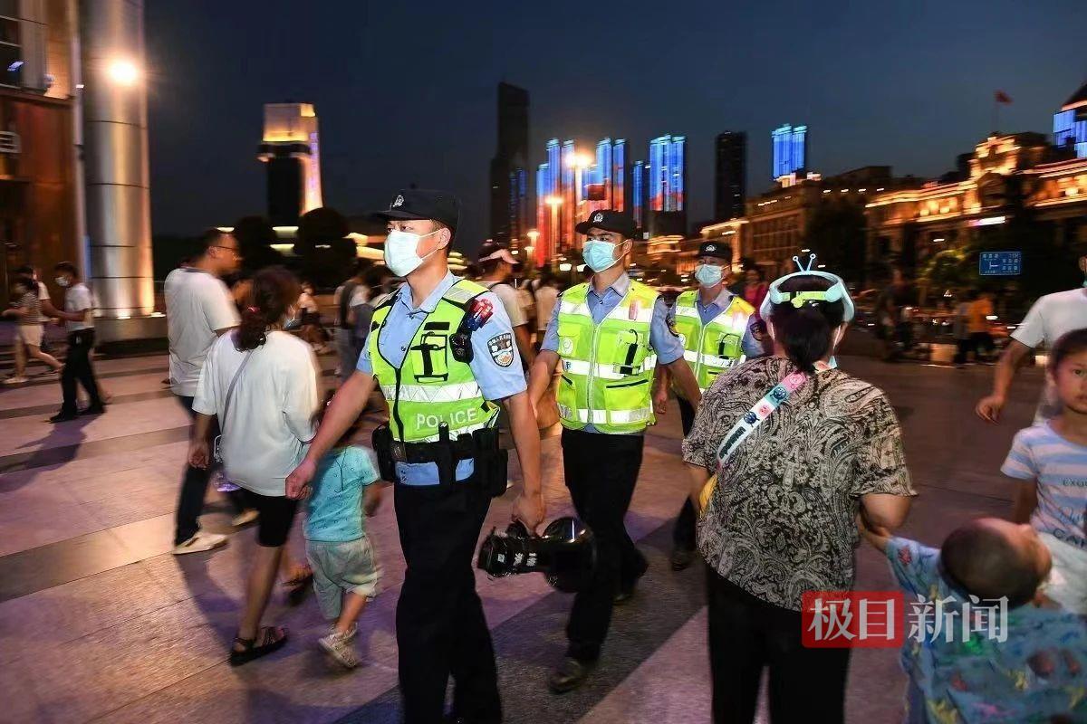 武汉市公安局水上分局王家巷派出所民警在汉口江滩一号门巡逻值守