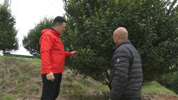海祥胜蜜桔种植专业合作社负责人谢永祥:“湖北没有蜜桔这个产业,汪主任推荐我们种这个品种,好打开市场销路。他还经常到地里现场指导种植管护。”