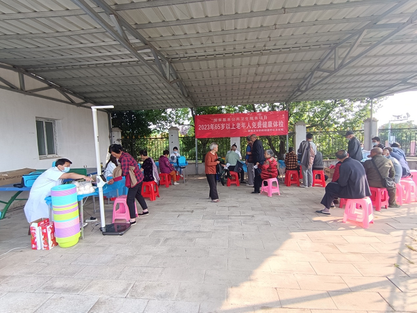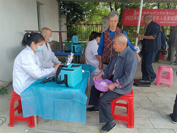 为65岁以上老年人免费体检工作是市政府为民办实事的“民心工程”。在长轩岭街工委和区卫健局的大力支持下,2023年5月25日早晨,长轩岭街道中心卫生院党委委员、副院长宋利峰率医务组一行17人赴狮子山村为65岁以上老年人开展健康体检,发放宣传物品,填制《武汉市65岁以上老年人免费体检知情同意书》等,村“两委”和驻村干部的积极协助,健康体检工作井然有序,半天时间完成了80位老年人免费体检工作。