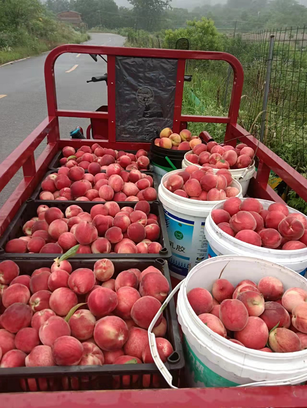 “您看,桃子都红透了,白桃黄桃都熟了”,上周,涝溪河村胡新忠家庭农场的胡总高兴的对来农场考察的江岸区委书记姚彬说,“今年又是一个丰产年,130余亩果园,其中桃子产量可以达到1万斤。”姚彬书记鼓励他继续开拓思路拓宽销路,在乡村振兴道路上砥砺前行,并带动更多村民一同致富。