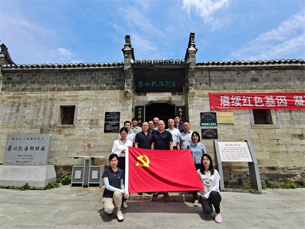 在驻村工作队第一书记陆斌的带领下,李主任一行首先来到蔡官田村,参观了首届中央监察委员会委员蔡以忱烈士陈列室。李主任一行聆听了讲解员绘声绘色的讲解,瞻仰烈士遗物,仔细观看历史图片,共同追忆革命烈士的英勇事迹,感悟了蔡以忱烈士对党忠诚、清正廉洁、勇于担当、勇于献身的革命精神。参观结束后,在场的党员同志还在党旗前庄严地宣誓,重温入党誓词。