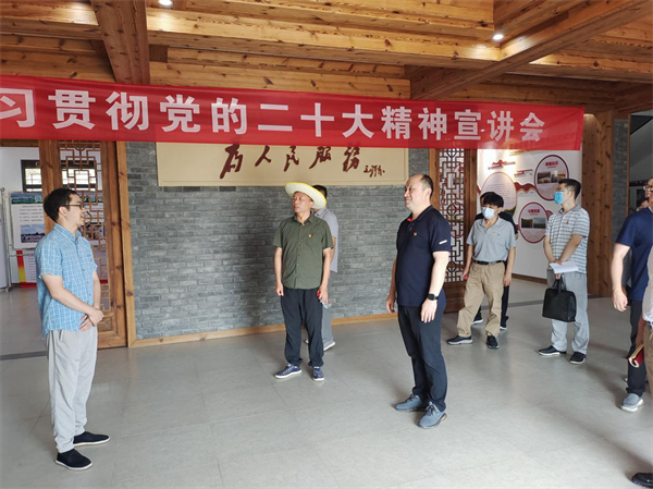 随后,在驻村工作队的带领下,李主任一行参观了凤凰寨村的村容村貌和凤凰寨村党群服务中心一楼党建馆。驻村工作队队员陈劲宇向李主任一行介绍了凤凰寨村的基本情况以及凤凰寨村党支部带领党员群众全面推进乡村振兴和“共同缔造”工作的经验做法。