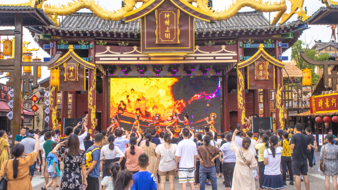 今年,葛天才在景区原有项目基础上,抢抓乡村“夜经济”新风口,以地域民俗特色为抓手,结合木兰故事与历史传承,投资2.4亿元,上新夜游项目“木兰不夜城”,打造沉浸式文旅新场景,一开街便圈粉无数,火爆全城,特色鲜明的夜游产品满足了游客多样化的需求,春节期间累计接待游客近30万人次,端午假期单日游客量最高突破4万人次,创开街以来历史新高。