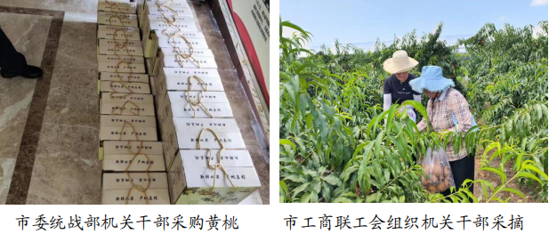 市委统战部、市工商联、市各民主党派也积极发动职工采买六家砦村黄桃。每周五,驻村工作队员便成了“送货员”,把一箱箱黄桃送到单位。8月1日,由市委统战部副部长、市工商联党组书记程春生带队,市工商联工会组织机关干部20余人前往六家砦村,现场采摘、订购黄桃,通过多种方式共助销黄桃1000余斤。
