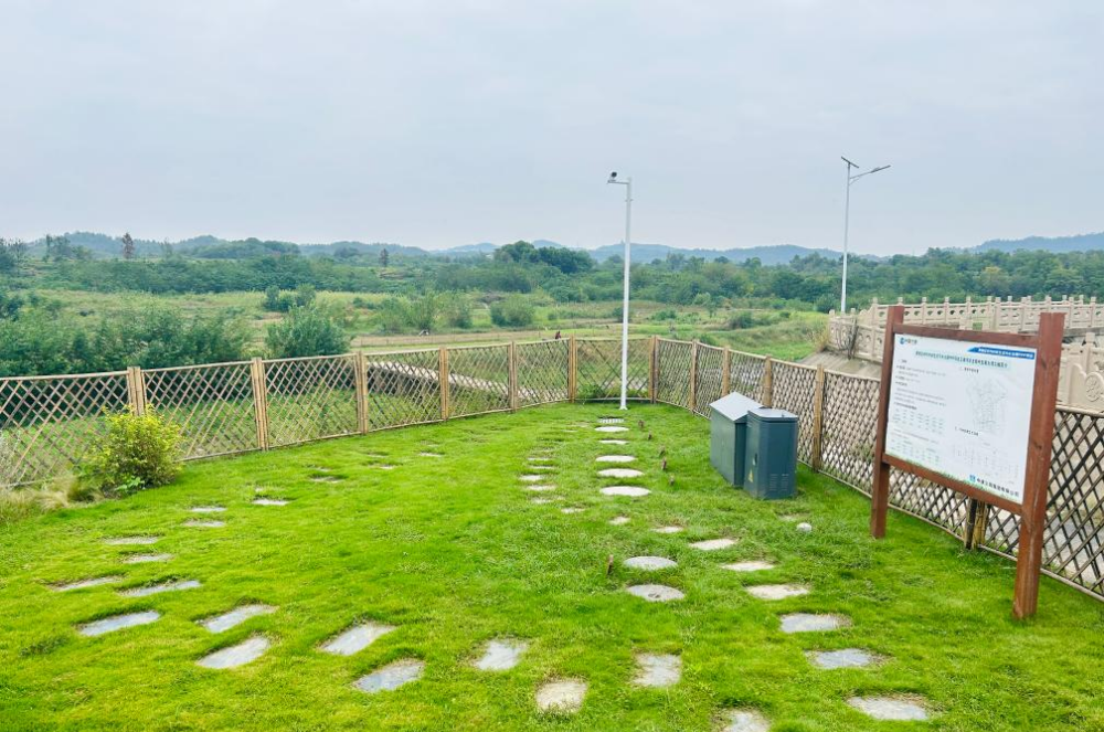 在河边有一处种满绿草的空地,被篱笆环绕起来,满眼绿意与四周乡野风光融为一体。草地上有几个整齐排布的井盖,打开井盖,水声哗啦啦入耳,水流正排入地下设施。