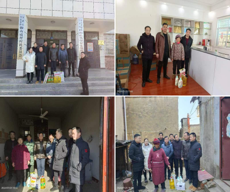 2024年1月25日,黄陂区国营四联院泵站领导一行五人赴李家集街仰山庙村,同村“两委”和驻村工作队一起进村入户,看望慰问村里脱贫户,并送上大米、油和牛奶等慰问物资。