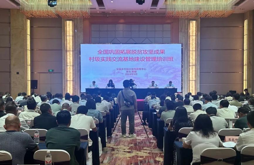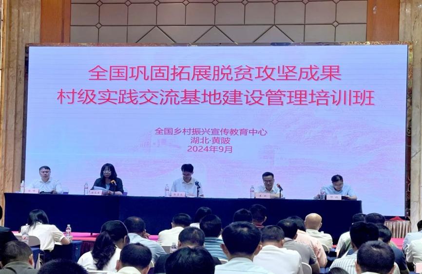 2024年9月11日上午,全国巩固拓展脱贫攻坚成果村级实践交流基地建设管理培训班在武汉市黄陂区纵横酒店举行开班式,全国乡村振兴宣传教育中心主任张慧东、副主任骆艾荣、湖北省农业农村厅二级巡视员王斌、湖北省乡村振兴宣传教育中心主任黄涛、武汉市农业农村局党组成员邓锐、武汉市黄陂区委常委、区人民政府副区长张峰出席。