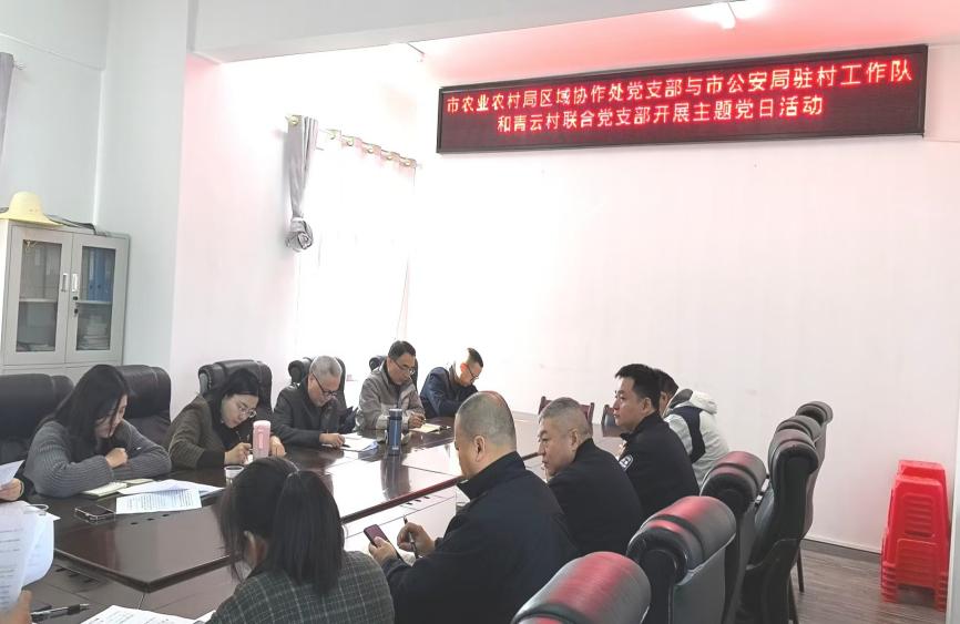 11月21日上午,市农业农村局区域合作处党支部与青云村党支部联合开展主题党日活动,活动由市农业农村局区域合作处党支部书记刘少波主持。市公安局驻村工作队和村”“两委”全体党员参加。