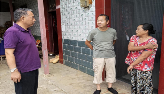 在独居老人江莲珍家里,张书记回复了她对于堆放柴草杂物小房子安全隐患的上报情况,提醒她注意高温不出门,尽量少进出杂物间,确保身体健康安全。