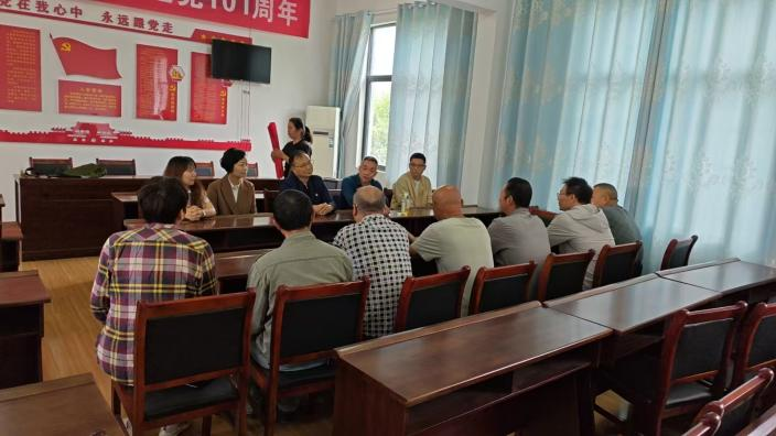 走访慰问结束后,一行人来到村会议室,与七里冲村的村两委成员、党员代表、瓜蒌基地负责人以及村民代表们围坐在一起,开展了以“产业发展促进乡村振兴”为主题的座谈交流会。
