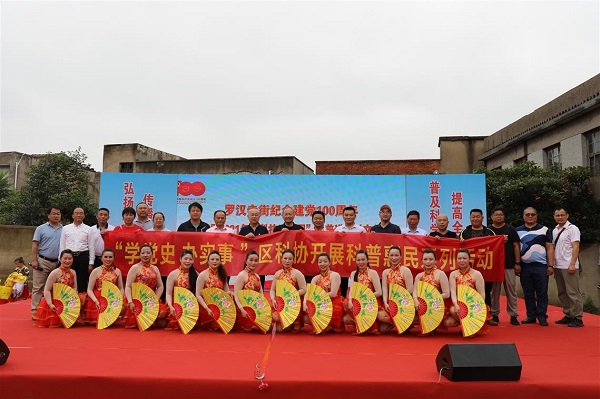 【学党史 进社区进乡村 我为居民办实事】为深入开展党史学习教育,更好地继承发扬党的优良传统,进一步推进科技创新成果和科学普及活动惠及于民,把学党史、悟思想转变为办实事、开新局的动力。 5月27日,区科协联合区委统战部,区工商联在蔡店街石龙社区举办“科技周”系列活动之“学党史 进社区 我为居民办实事”;同时联合罗汉寺街道办事处共同主办庆祝建党100周年暨黄陂区2021年“科技活动周”科普进乡村文艺演出。