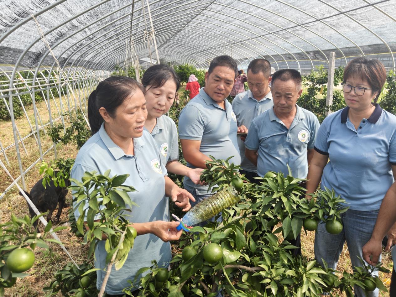 理论学习结束后,全体人员前往刘小丫家庭农场柑橘种植区开展现场指导培训。区科普基地联盟成员单位的技术骨干深入果园一线,结合田间实际情况,与大家分享柑橘病虫害识别、监测与绿色防治技术,手把手演示科学用药、物理防控等实操方法;同时,联盟成员还以科技志愿者身份,主动对接种植户需求,针对果树修剪、水肥管理等生产难题提供个性化指导,现场互动频繁,种植户们认真记录要点、积极提问交流,“田间科普+志愿服务”的模式让技术知识真正落地见效。
