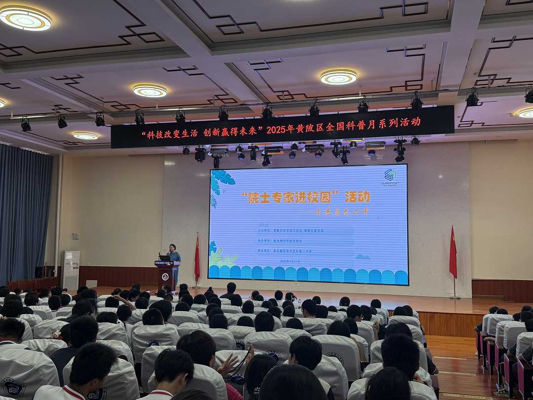 活动伊始,盘龙二中校长袁建波致辞。他代表全校师生,向莅临现场的专家及各位领导表示热烈欢迎与诚挚感谢。他指出,当下正值黄陂区全国科普月活动期间,此次“院士专家进校园”科普报告会,对处于九年级关键成长阶段的学子而言,既是接触前沿科技的宝贵机会,更是启发学生创新思维、树立科学梦想的重要启蒙。