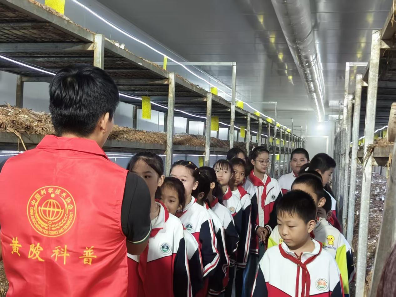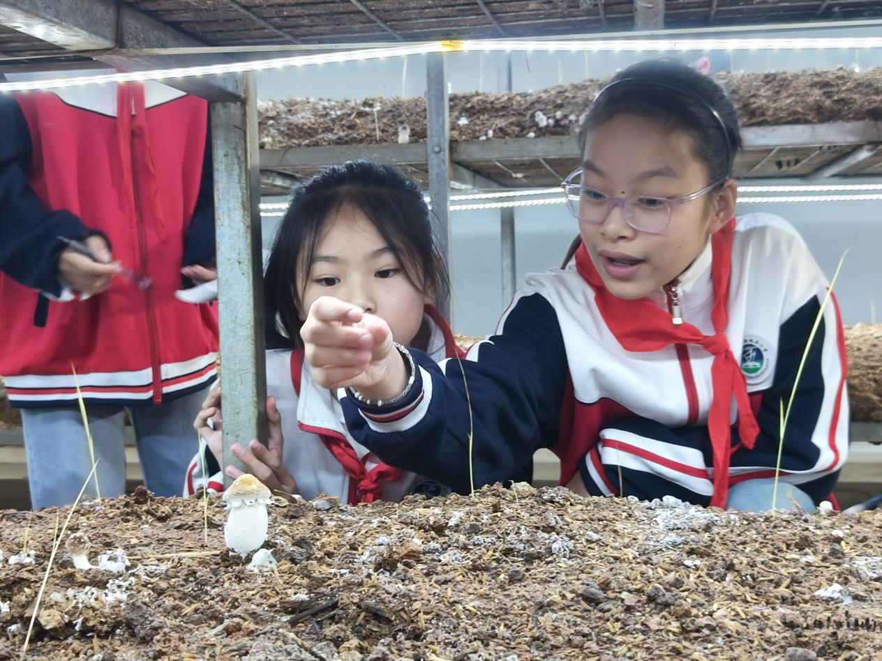 活动以“食用菌产业科普”为核心主线,打造沉浸式研学体验。在企业科技志愿者的带领下,学生们依次走进珍稀食用菌科普展厅、智能出菇房与菌包加工车间,通过“观摩+实践+互动”的模式,直观了解蘑菇的生长条件、营养特性及现代化种植全流程。从亲手操作菌包制作、观察基料发酵,到体验蘑菇采摘,孩子们在动手实践中近距离感受科技赋能农业的独特魅力。“原来蘑菇要在恒湿恒温的房子里生长,亲手做菌包时特别有成就感!”“原来不同蘑菇的营养不一样。”现场学生的真切分享,道出了研学活动带来的新鲜体验与知识收获。