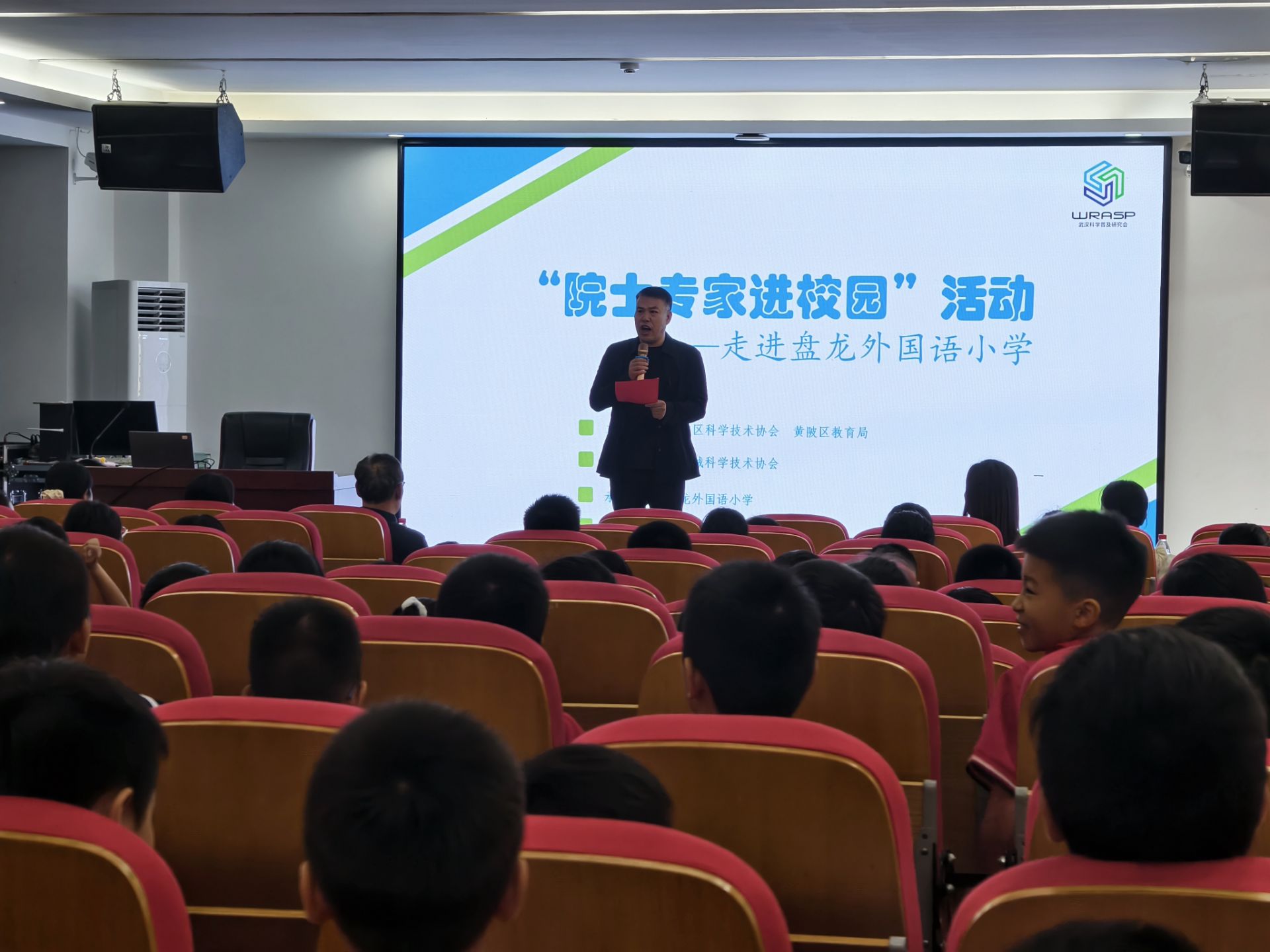 为弘扬科学精神,培育青少年环保意识,9月29日下午,2025年黄陂区全国科普月“院士专家进校园”活动在盘龙外国语小学五楼报告厅顺利举行。本次活动以“环境污染与人类健康”为主题,特邀武汉科学家科普团团员、中国地质大学教授徐世球莅临授课。区科协、区教育局、盘龙城科协相关负责人与学校五年级近200名师生共同参与。