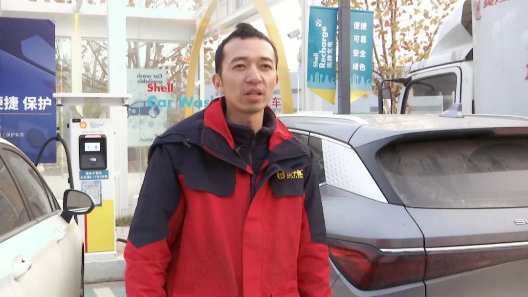 市民刘遇辉:我在附近送货,平时有需要就过来充电,这边充电设施很齐全,不到一个小时就能充完,很实惠,很方便,为我节省了很多时间。