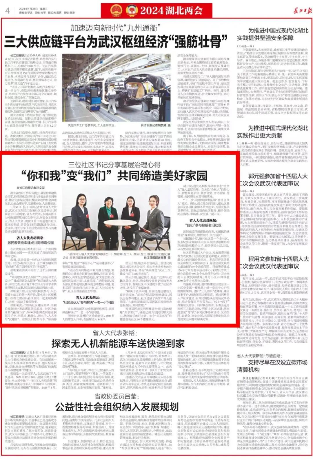 1月30日,省人大代表,黄陂区前川街道德兴社区党支部书记、居委会主任刘佩佩受邀走进长江日报直播间,分享德兴社区发动居民参与共建美好家园的故事和经验。