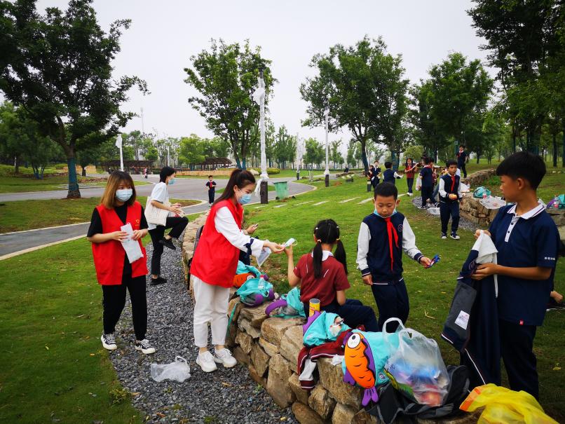 参观完主题展览后,大家纷纷穿上志愿者服装,开展“公共场所 佩戴口罩”文明旅游志愿服务,为群众发放口罩,讲解文明健康防疫知识,提醒群众正确佩戴口罩的方法。