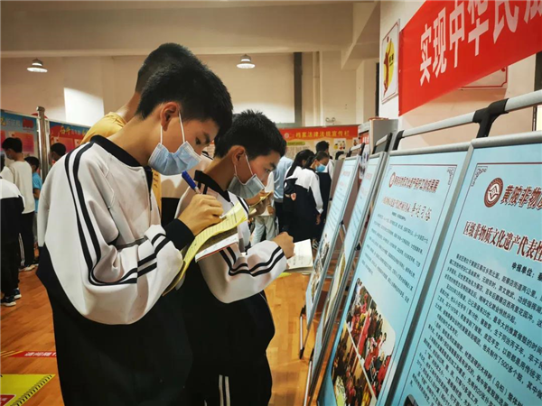 活动中,盘龙二中组织学生们有序观看了非遗项目展览、档案法规宣传展览。